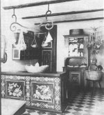 darunter befindlichen Backofen, Löschkessel, Herd und die